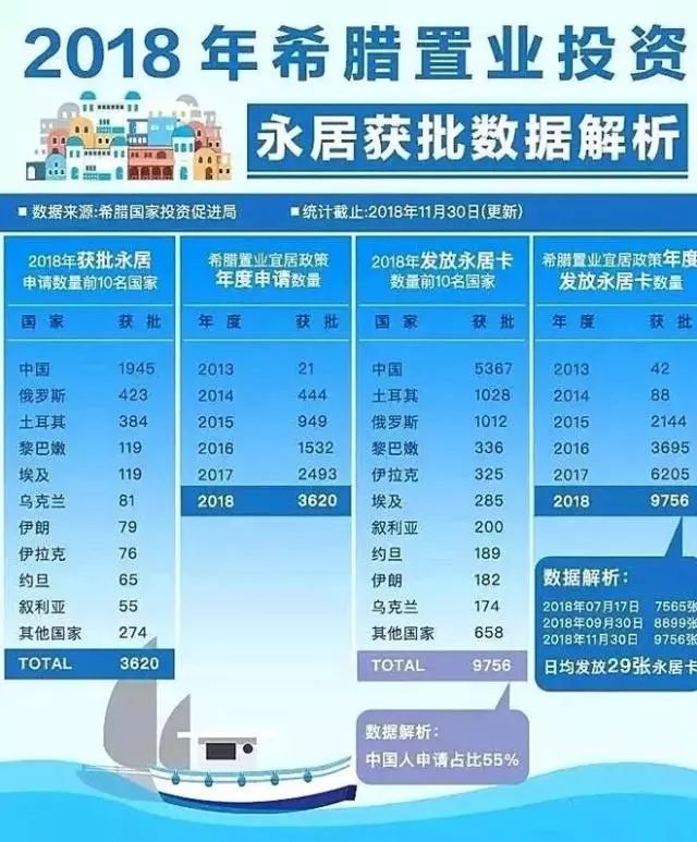 從原來的排期情況看,希臘購房移民已經(jīng)成為眾多投資者的熱門之選。近日,希臘國家投資促進(jìn)局發(fā)布的關(guān)于黃金簽證最新數(shù)據(jù)顯示:2018年(截至2018年11月30日)總計(jì)發(fā)放永居卡9756張,其中包括3620名主申請人和6136名附屬申請人。希臘有可能將超過美國EB-5簽證,成為發(fā)放居留許可數(shù)量最多的國家。希臘購房移民熱潮中,中國人的熱情最高漲,在2018年度發(fā)放永居卡數(shù)量前十國家排名中,我國以5367張位居榜首,排名第二的土耳其僅為1028張。